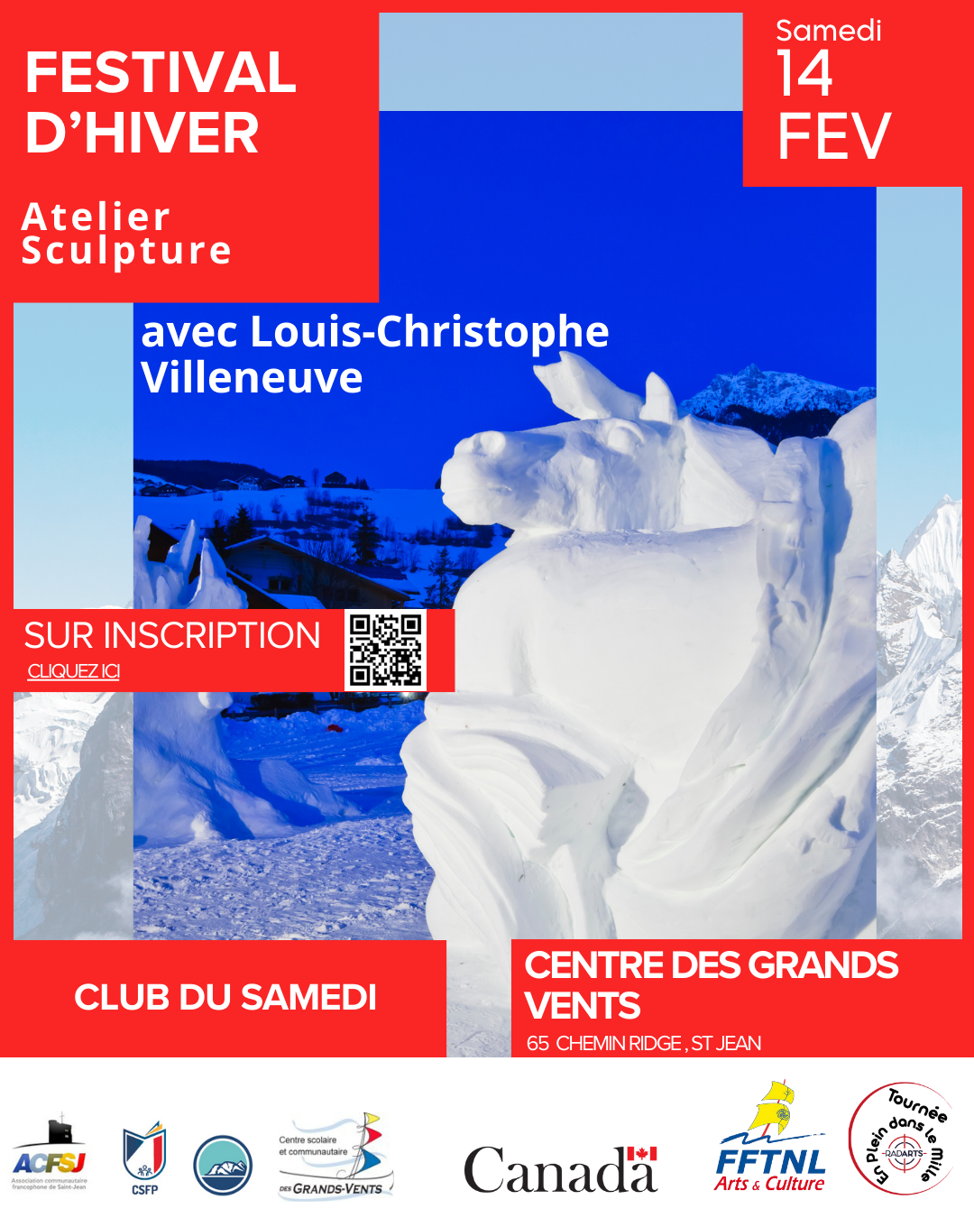 Dans le cadre du Festival d’Hiver 2026, le Club du samedi propose un atelier de sculpture animé par Louis-Christophe Villeneuve.