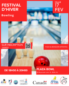 Dans le cadre du Festival d’hiver, joignez-vous à nous pour une journée conviviale et dynamique au bowling ! Une activité parfaite pour s’amuser entre amis ou en famille, peu importe votre niveau. - Détails de l’activité
