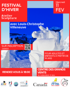 Dans le cadre du Festival d’Hiver 2026, rejoignez-nous pour un atelier de sculpture animé par Louis-Christophe Villeneuve.
