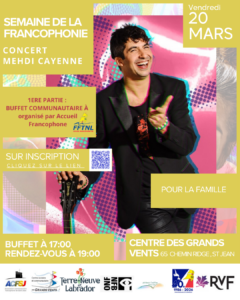 Dans le cadre de la Semaine de la francophonie, l’Association communautaire francophone de Saint-Jean (ACFSJ) invite la communauté à participer à une soirée festive et rassembleuse le vendredi 20 mars 2026 au Centre scolaire et communautaire des Grands-Vents.